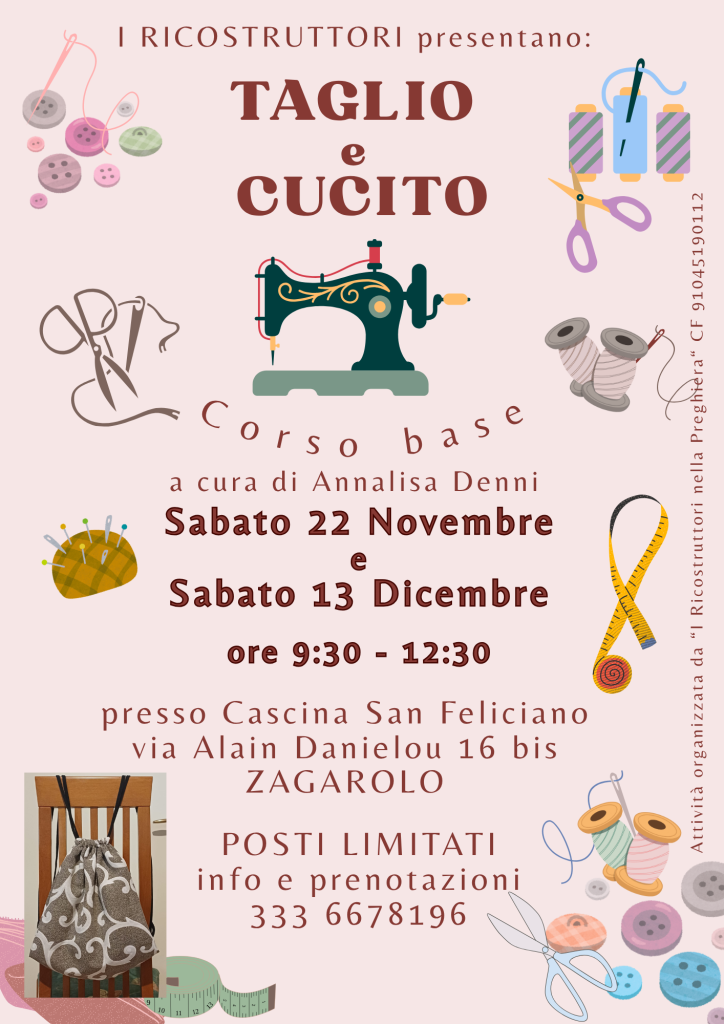 🪡🧵 Sabato 22 novembre e sabato 13 dicembre dalle ore 9:30 alle 12:30 si terrà un corso base di taglio e cucito con la realizzazione di uno zaino a sacchetto. 🎒