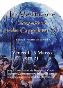 La Missione dei Ricostruttori nella preghiera è farsi testimoni di una cristianità capace di venire incontro al bisogno di preghiera e ricerca interiore, spesso inconsapevole, dell’uomo contemporaneo. Attingendo alle risorse della tradizione cristiana, propongono un cammino di rientro in se stessi, che consenta di raccogliere il proprio sguardo, disperso all’esterno e disorientato, e di introdurlo nel cuore: la meditazione profonda.