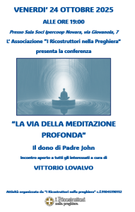 Venerdi 24 ottobre 2025 vi aspettiamo alle ore 19:00 per la conferenza “La via della meditazione profonda”con Vittorio Lovalvo